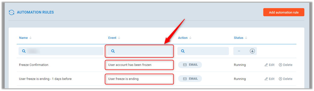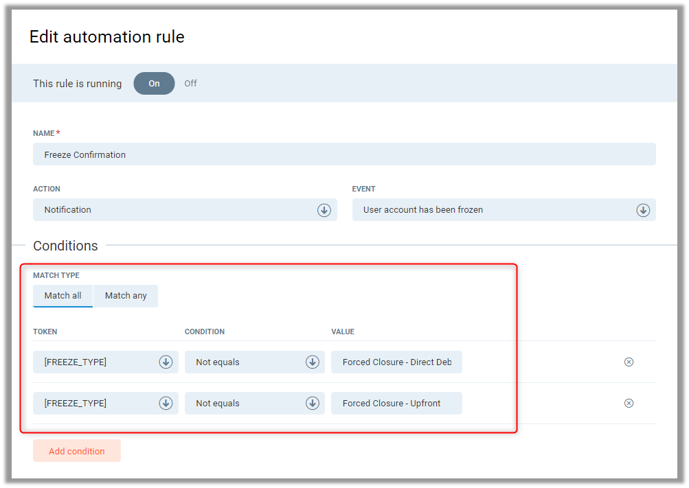 For the following automation rules, you may wish to prevent the rules from triggering based on the Freeze Type used. In Event search for one of these two rules: