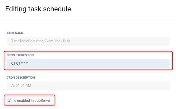 Is enabled in job server - Tick this to enable the job, this will run based on the cron expression above.