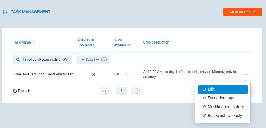 - Search for a task named TimeTableRecurring.EventPenaltyTask and edit it