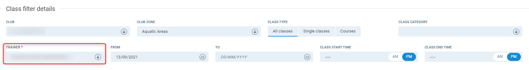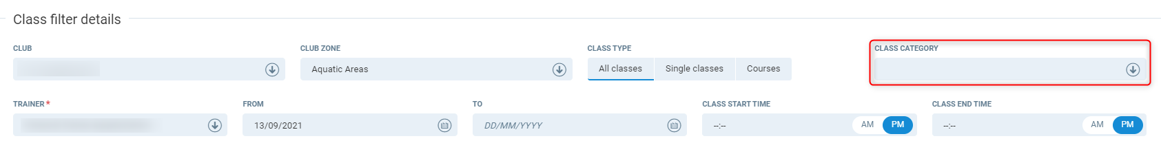 Club Zone - Filter to only classes within a club zone. If you select the parent zone, this will include all classes within the child zones.
