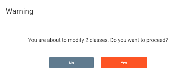 This will produce a warning with a count of the amount of classes which will be modified, press Yes to continue.