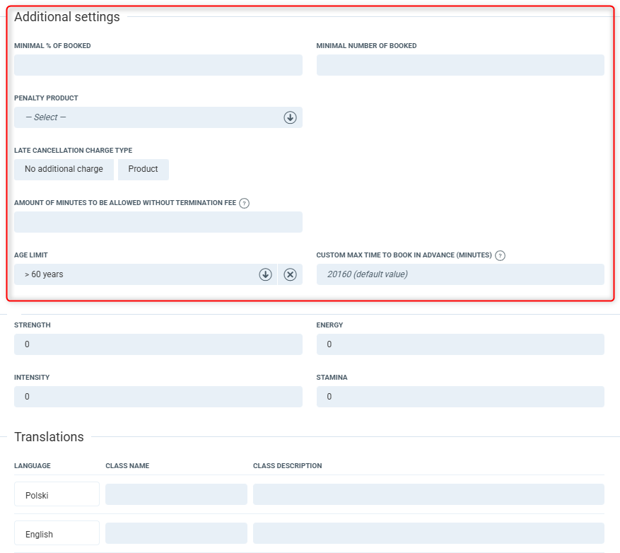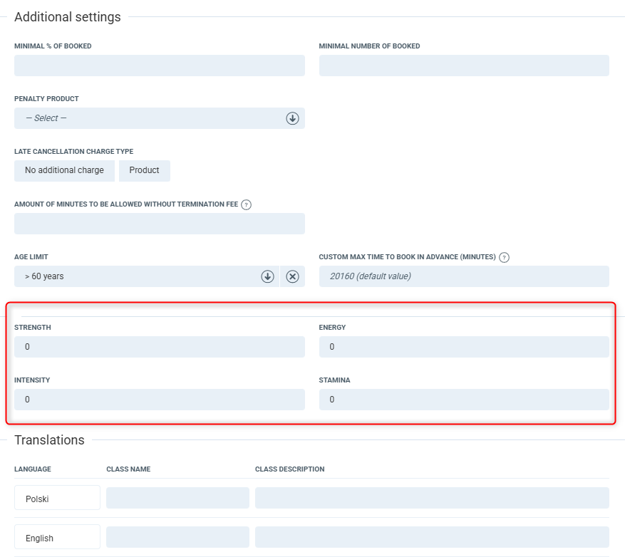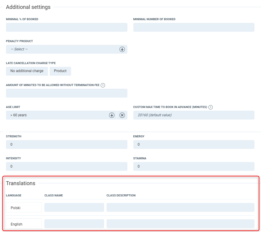 Translations: A grid allowing you to enter the Name and Description of the class in different supported languages. These translations will appear on the client portal and is great for marketing purposes.