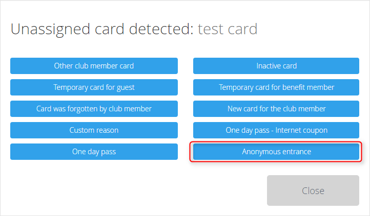 You can also add a card to an anonymous user by using Anonymous entrance option. If you choose it, the system will directly move you to the POS tab.