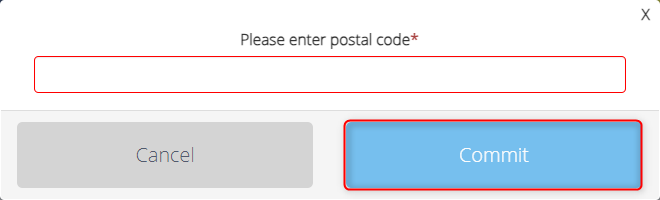 4. In the new pop-up window enter the postal code and then click Commit to finalise the transaction.