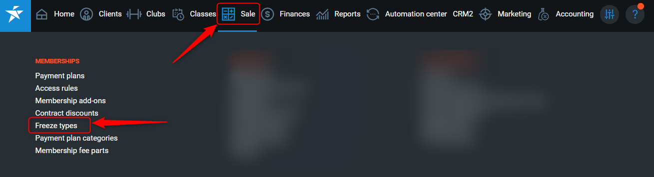 To access freeze types, go to PGM->Sale->Freeze Types.