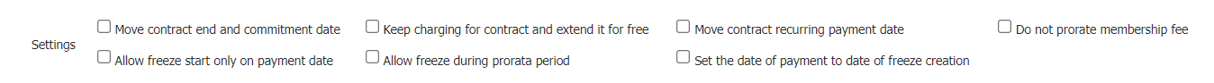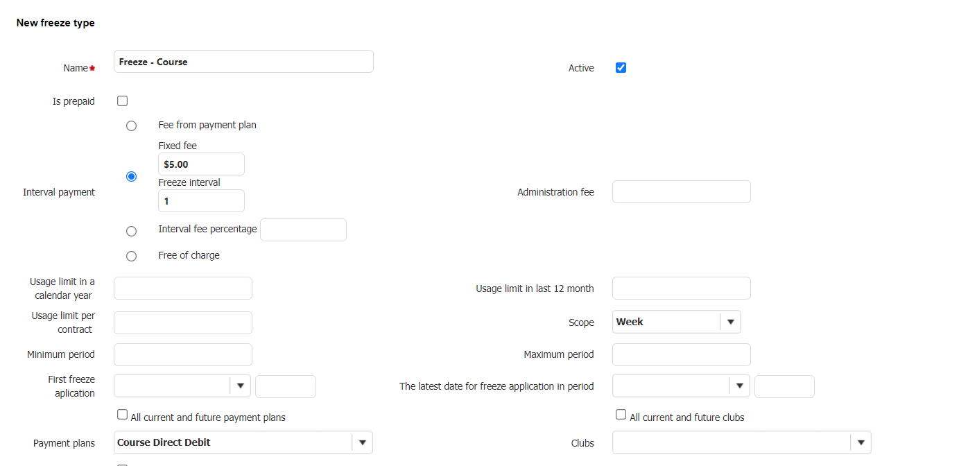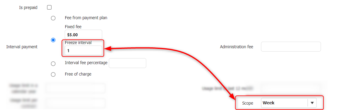 - Fee from payment plan - Not recommended to use if the scope of the freeze (pictured below) is different to the payment interval in the payment plan.