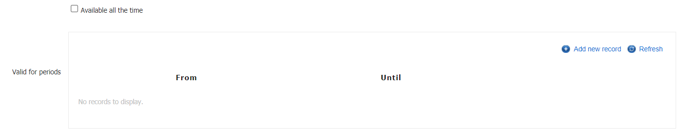 Valid for periods - Selecting Available all the time will allow this freeze type to be used at any time.