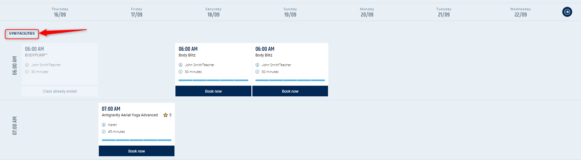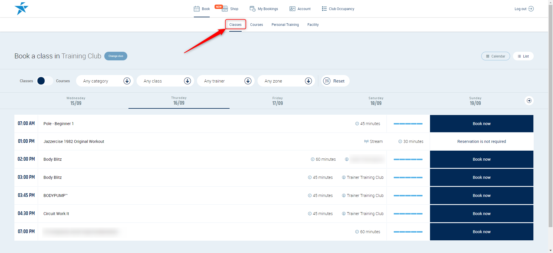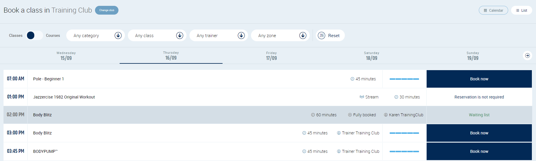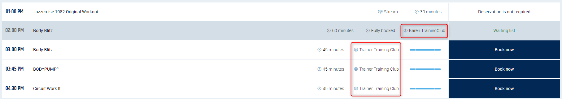 Trainer - This will allow the club member to filter to their favourite trainer.