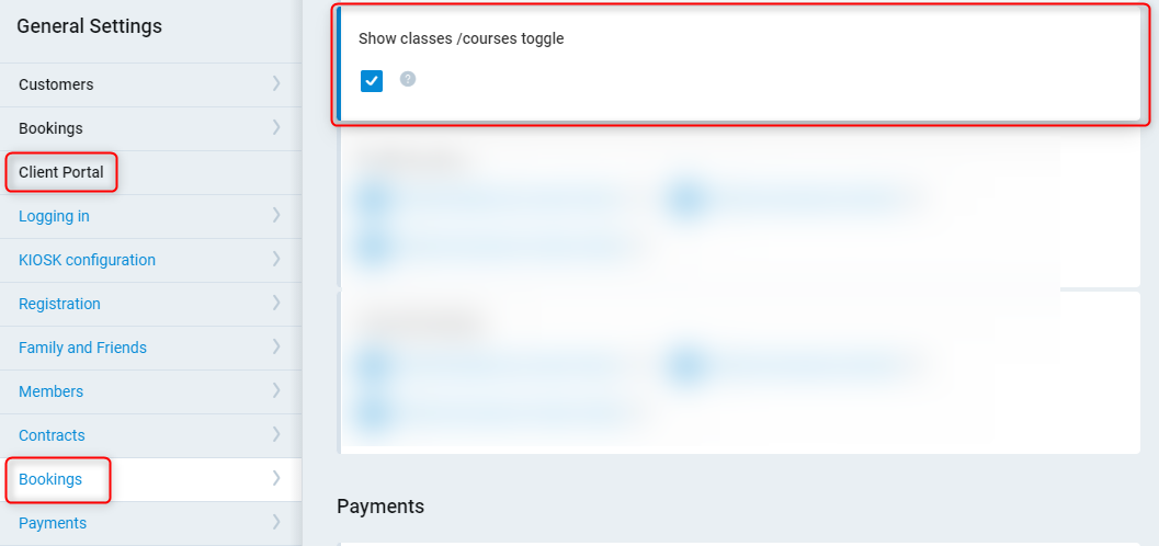 This toggle can be hidden in System settings, go to PGM->Settings->System Settings, then go to Client Portal->Bookings->Show classes / course toggle to enable/disable the visibility on client portal.