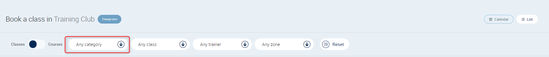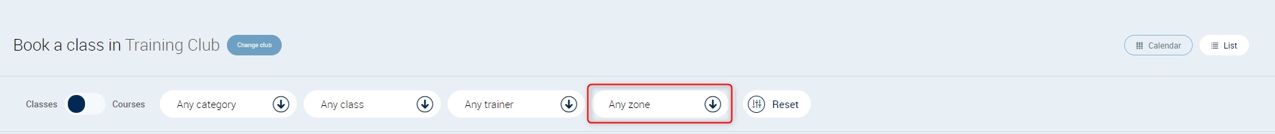 Zone - This will allow the club member to only filter to classes held in a particular location.
