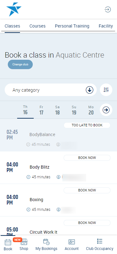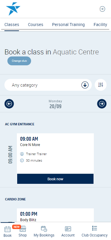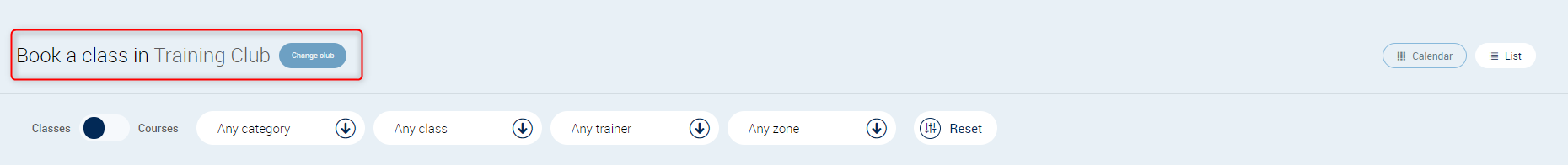 Change club - If you have more then one club, this will allow the member to change clubs and book classes in another club.