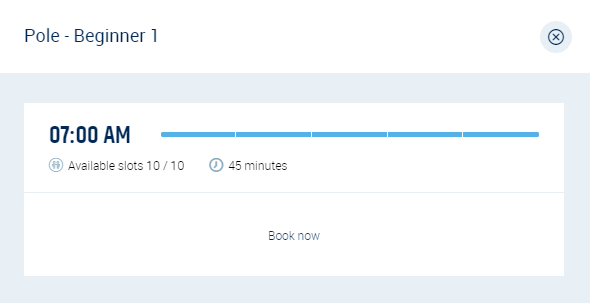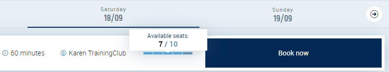 Capacity - This is a visual indicator of the current capacity of the class. This will change when more people are booked into the class.