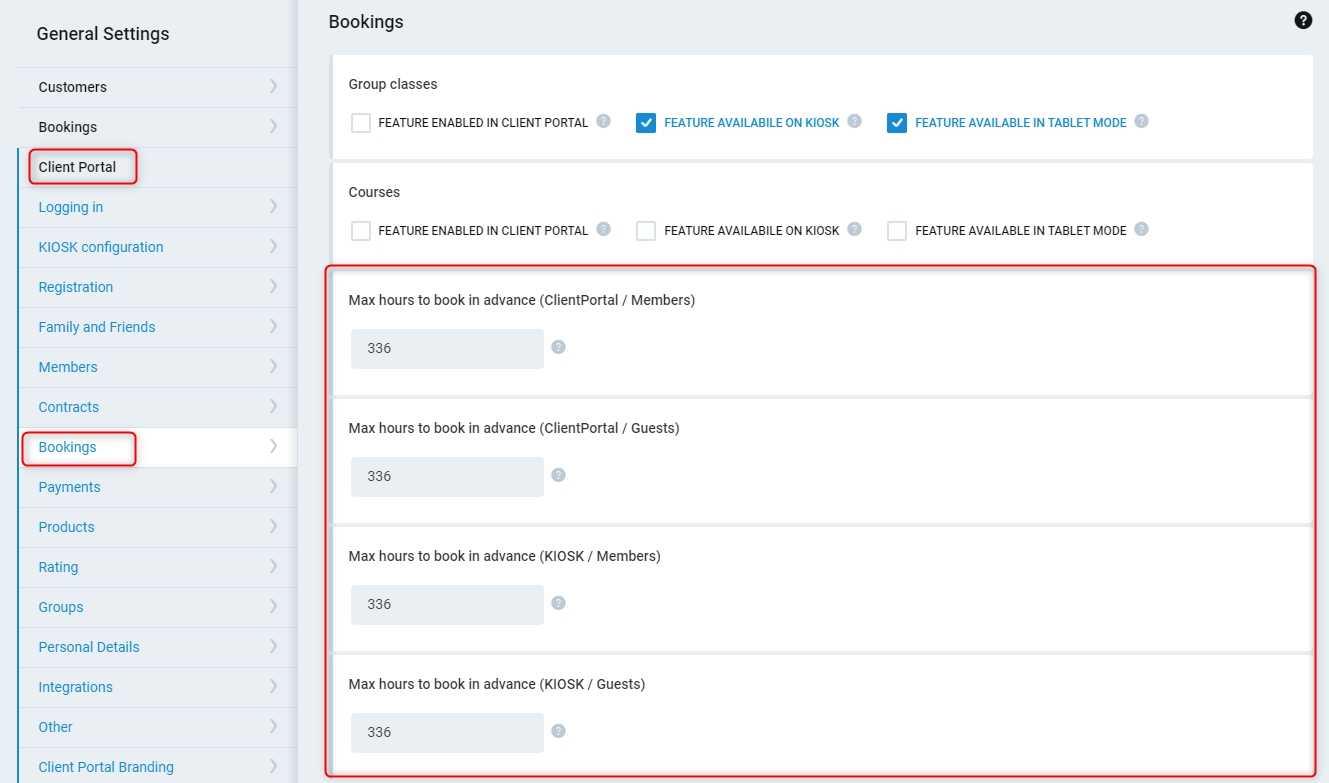This will guide you through the different settings for the Classes module on the Client Portal.