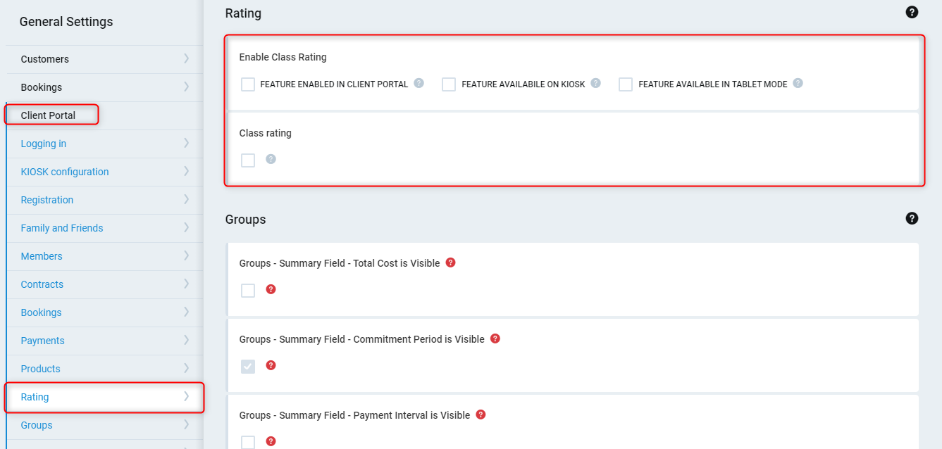 Tick the Class rating button, as this will turn on the feature to use class ratings.
