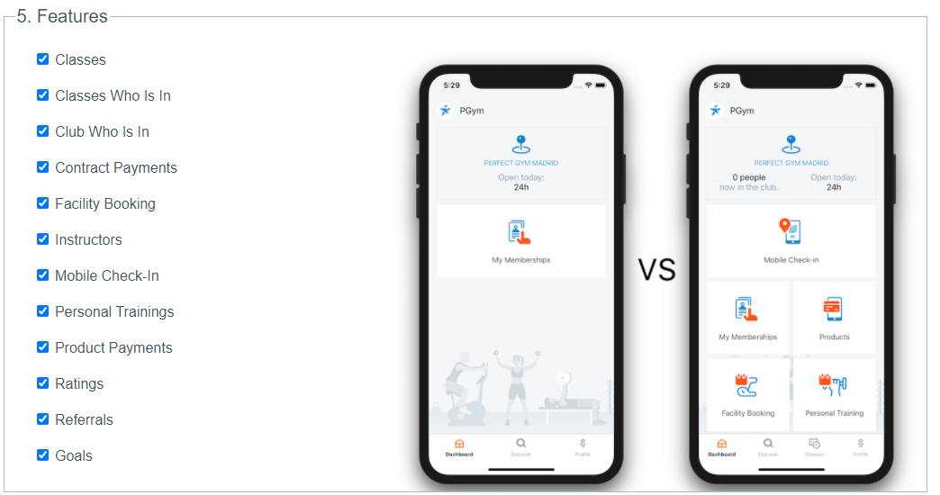 - Classes - Enables classes module in mobile app, allows your members to search, preview, and book group classes,