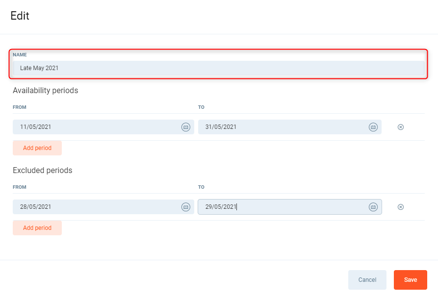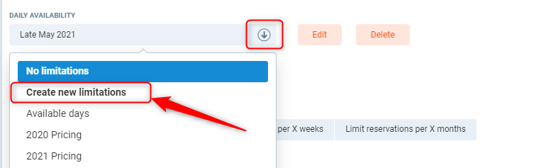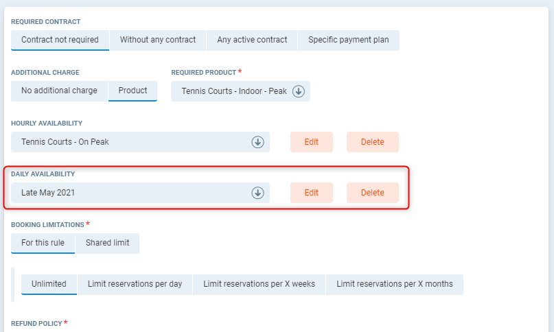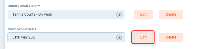 To edit an existing daily availability, press Edit on a rule that is using that daily availability.