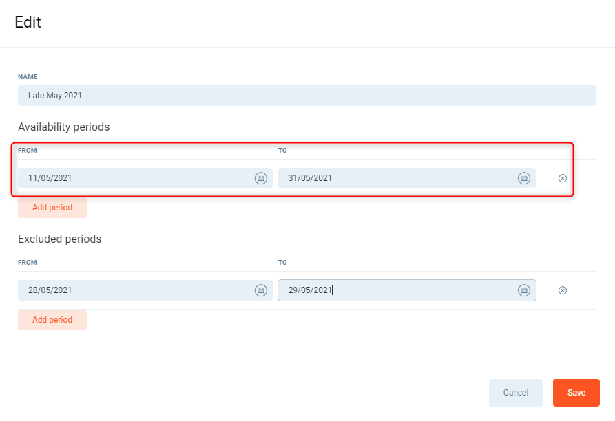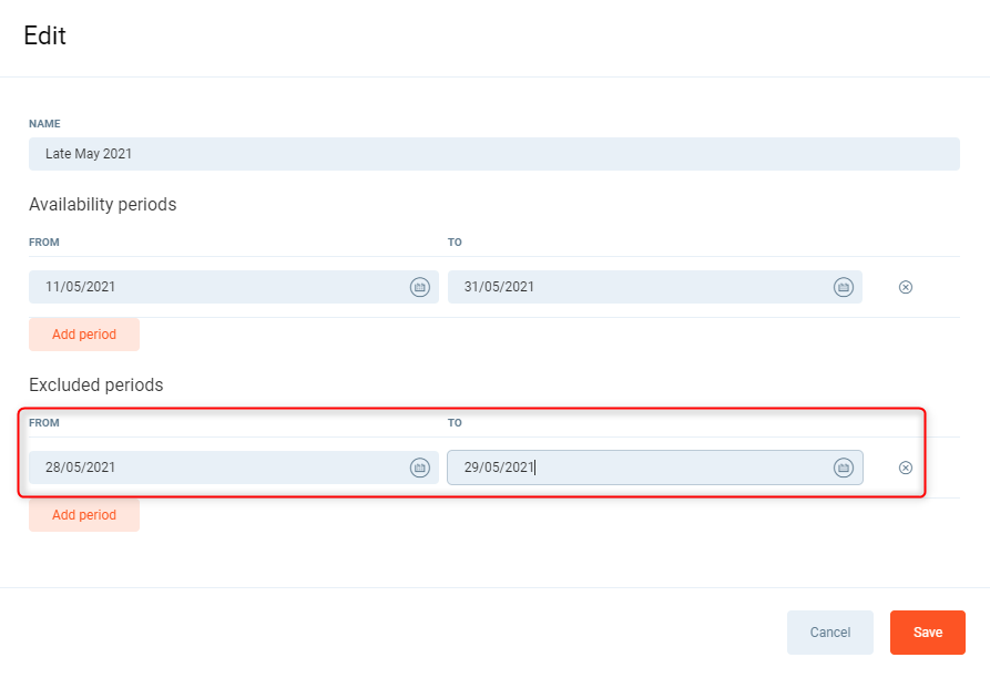 Excluded periods - Set the date/date range this where this facility booking rule cannot be used.