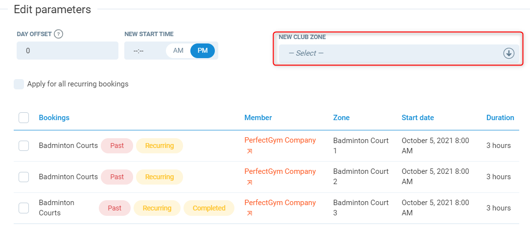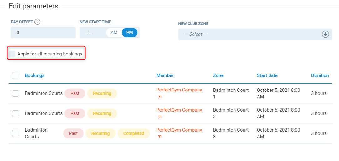 Apply to all recurring bookings - If this booking is a recurring booking, ticking this box will also modify all future recurring of the bookings
