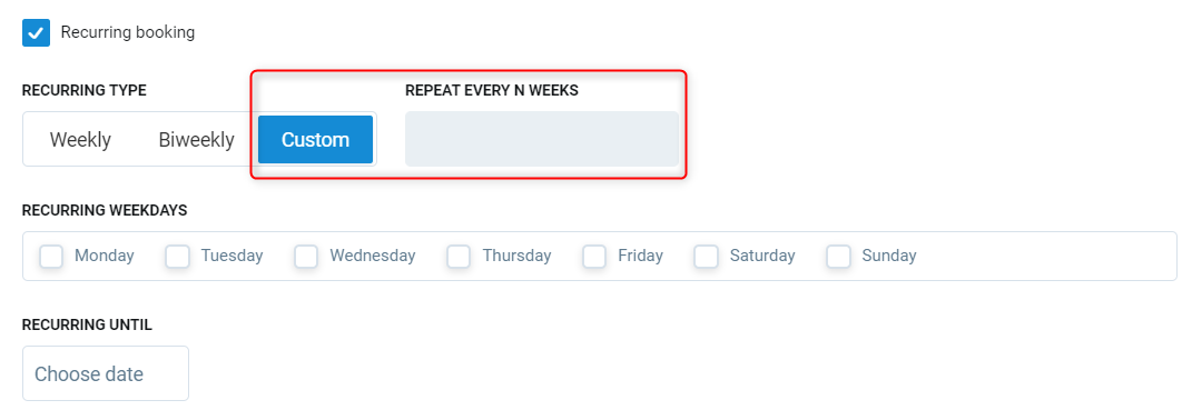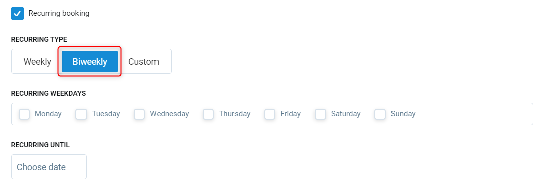 Recurring type - Select the frequency of the bookings.