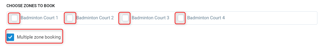 Multiple zone booking - Selecting this option will allow you to create multiple bookings in different zones of the same zone type.