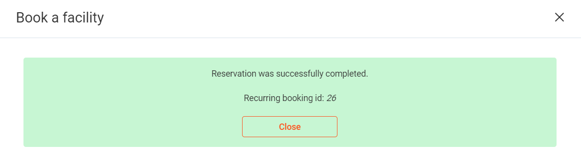 Reservation is now complete, press Close to continue.