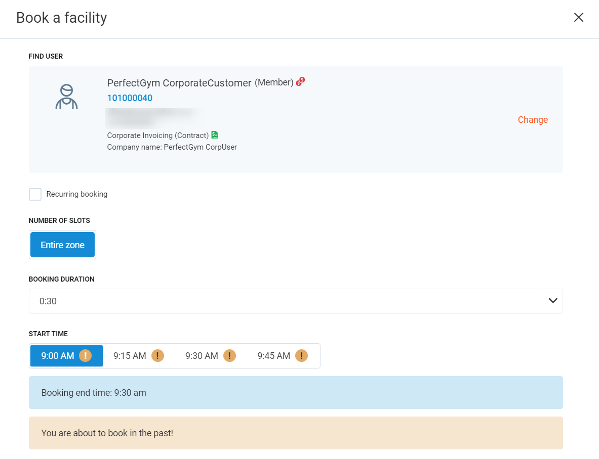 Note: If you want to book a club member in two different zone types, you will need to create a separate booking.