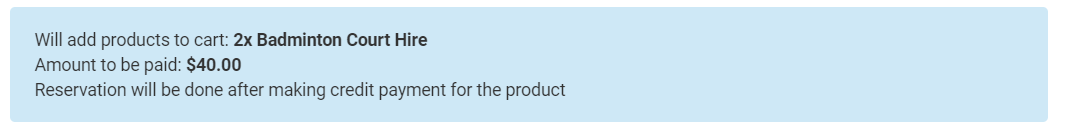 Additional information - This will display information about the booking before booking. This will change based on the type of booking rule used.