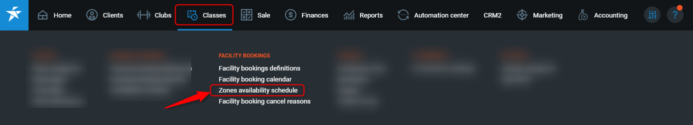 To access the zones availability schedule, go to PGM -> Classes -> Zones availability schedule.