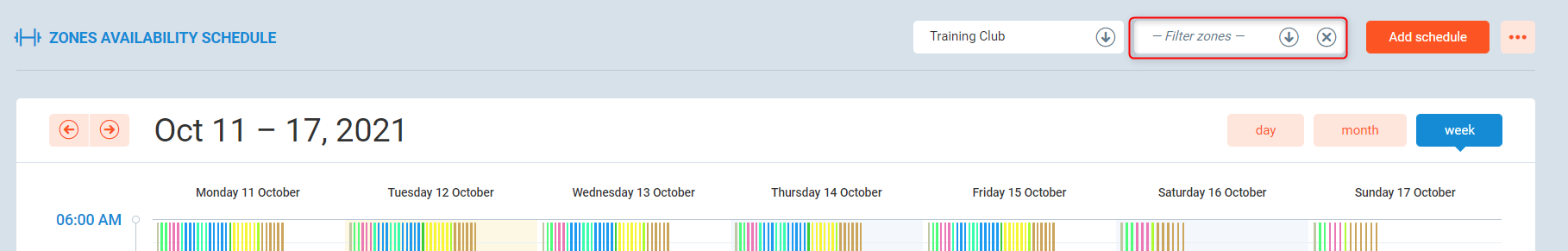 Selecting zones here, will carry over the filters when you press Add schedule.