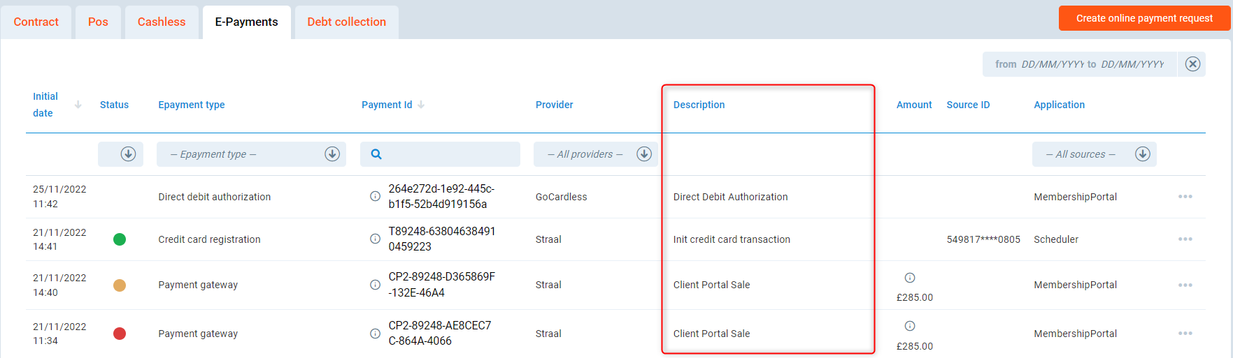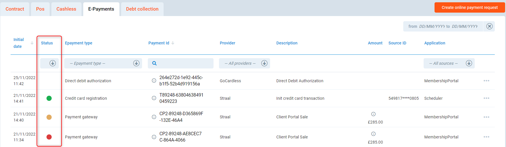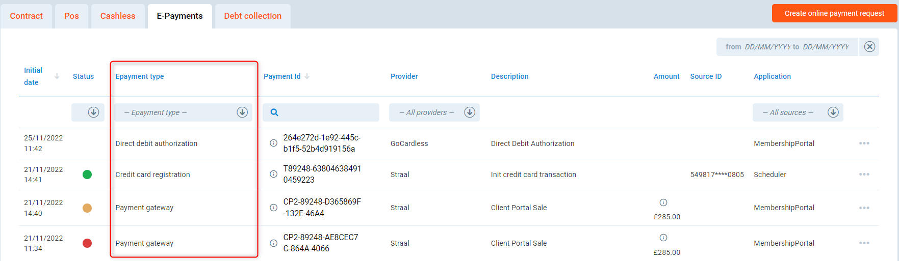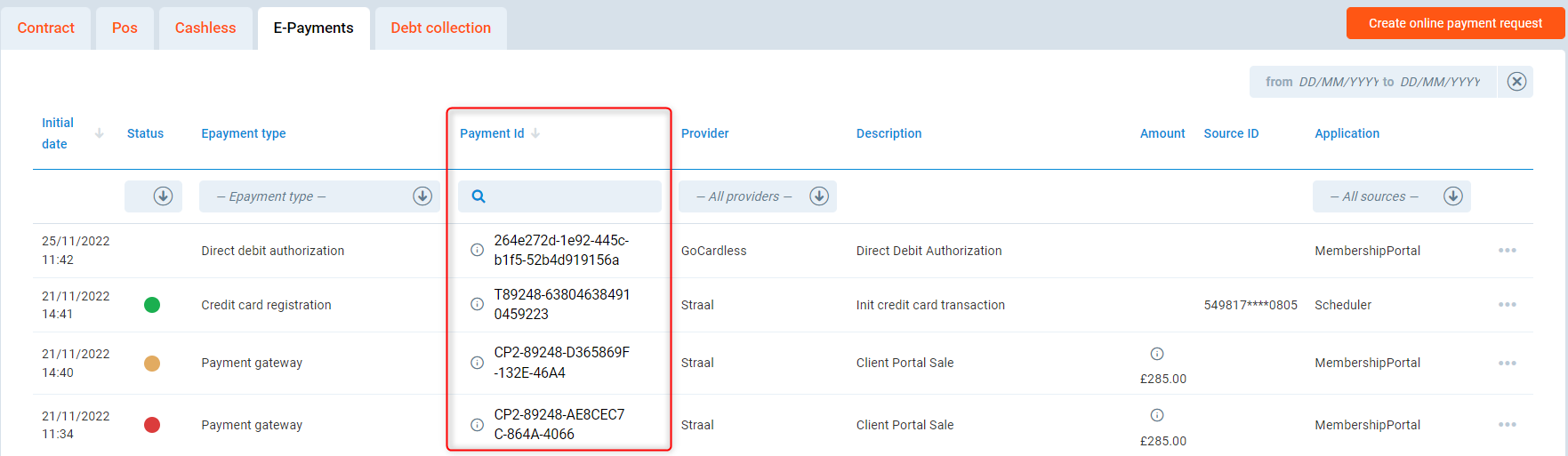Here, you will get more information about the E-payments page on the Member Profile in the PGM system. It allows investigating all electronic payment attempts performed by a given club member.