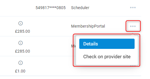 - Details - it displays more information on the transaction in a new window.