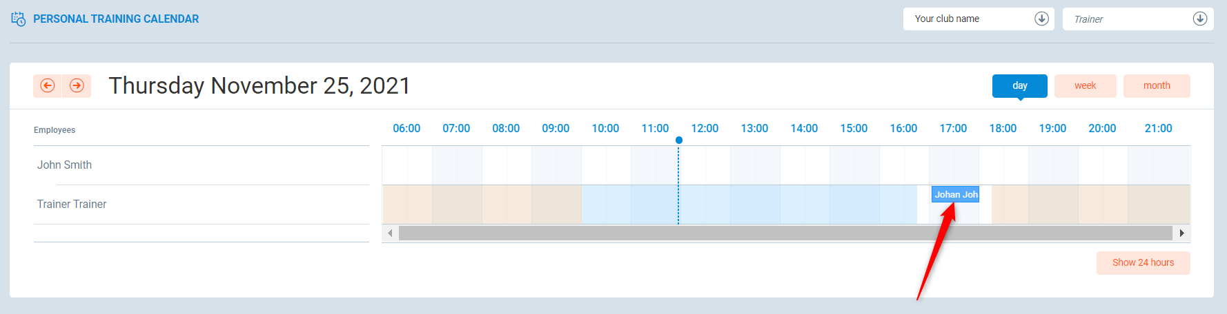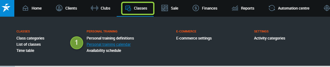 1. Go to the PGM -> Classes -> Personal Training --> Personal training calendar.