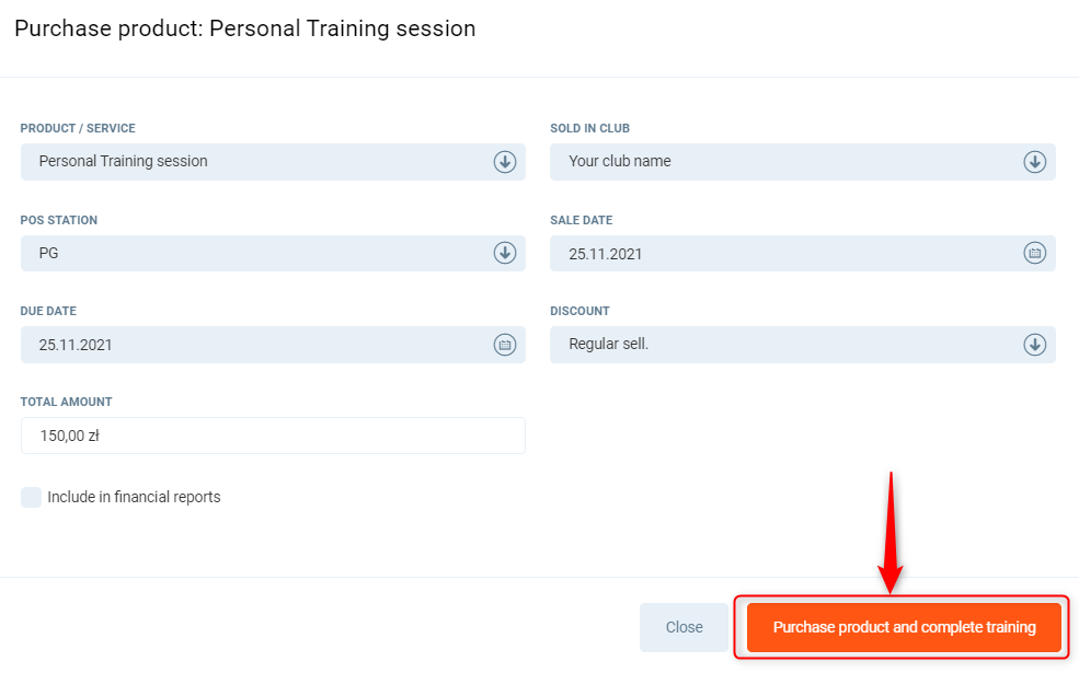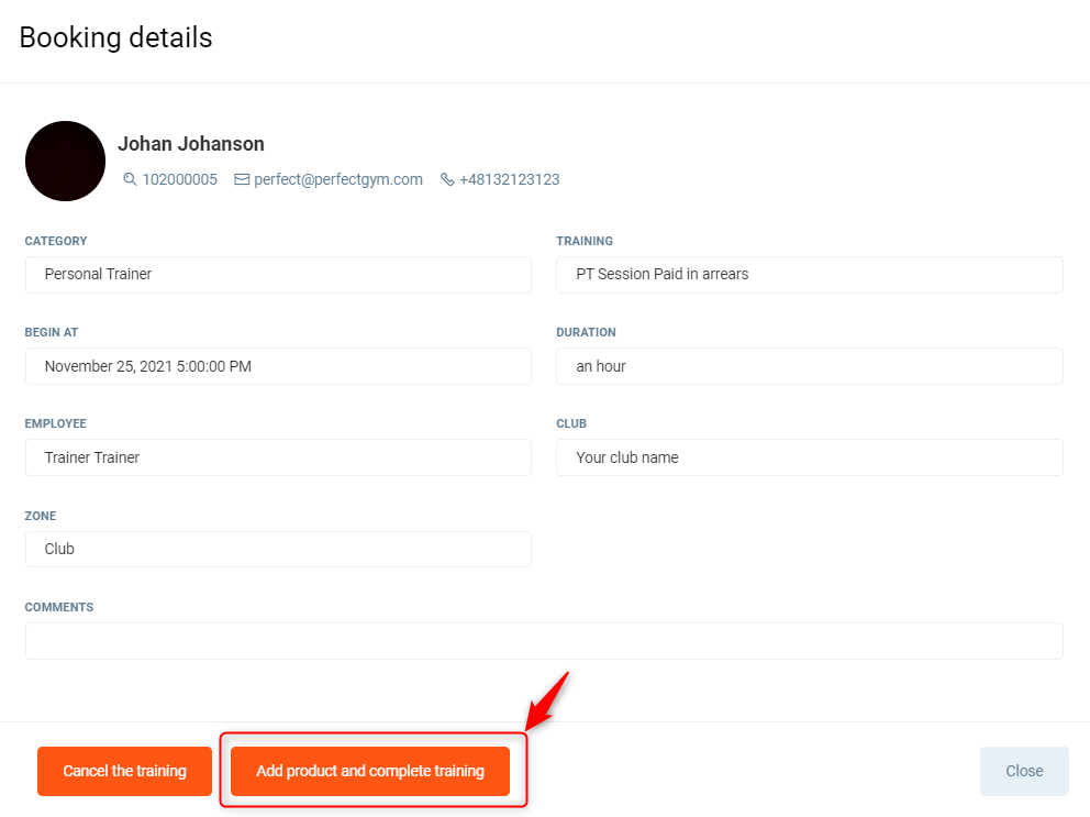 The standard procedure allows a member for booking a Personal Training session only having purchased a given Product. However, a possibility exists to configure Personal Training in such a way, that the member or guest could pay for their session afterward. In such a case, there is no need to purchase a product before the training.