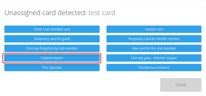 You can create custom entrance reasons to allow visits to your club to those people, who are not club members or do not use their standard member cards for some reason.