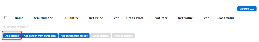 To enter a new product, click on one of the grey squares (if starting from scratch, nothing will be populated here)
