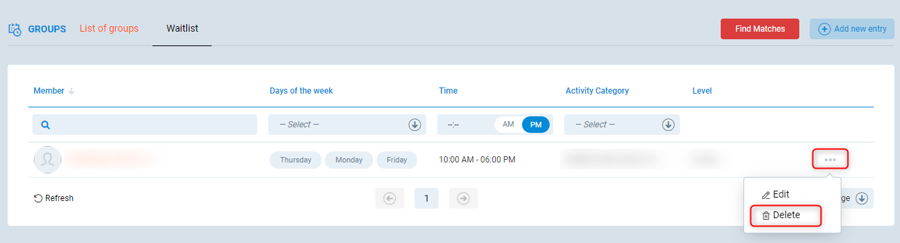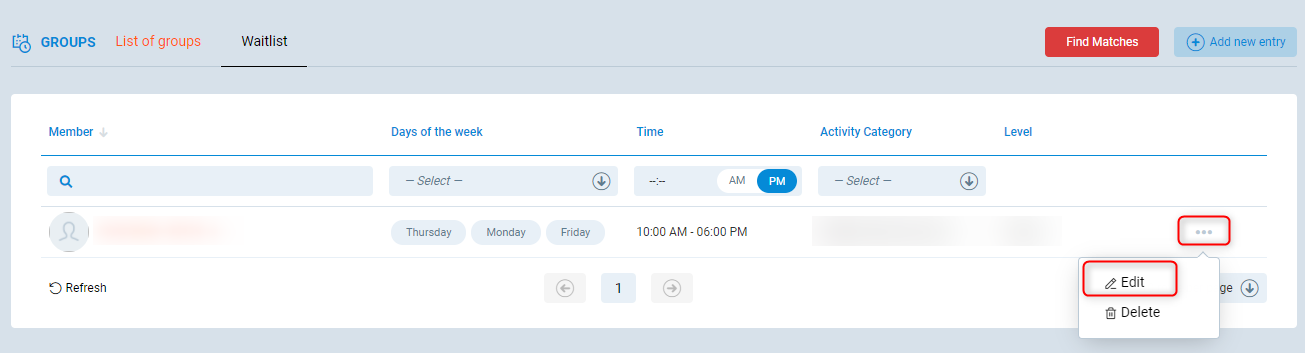 Delete - To delete a member from the wait list, press the three dots to the right of their name and press edit. This will allow you to delete their request on the waitlist.