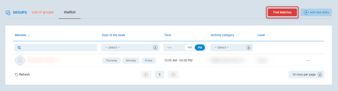 To find matches, press Find Matches on the top right hand corner of the waitlist screen.