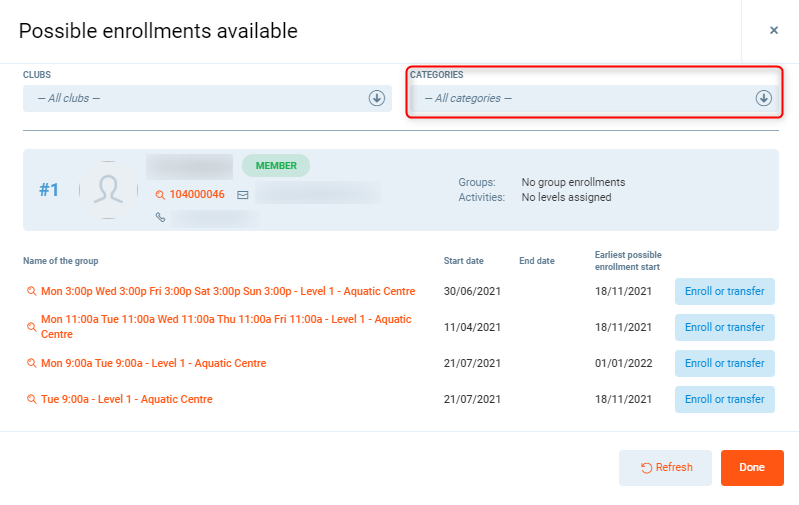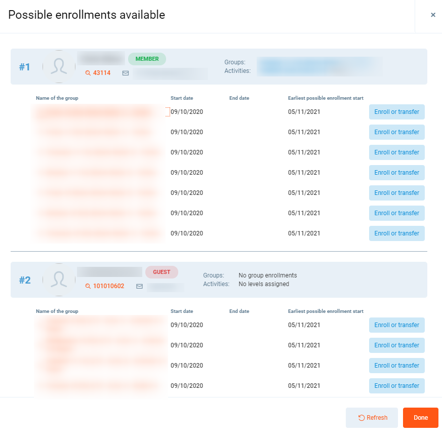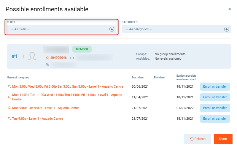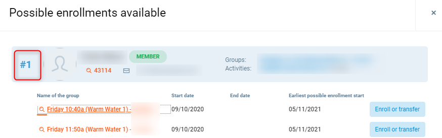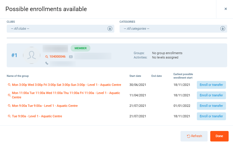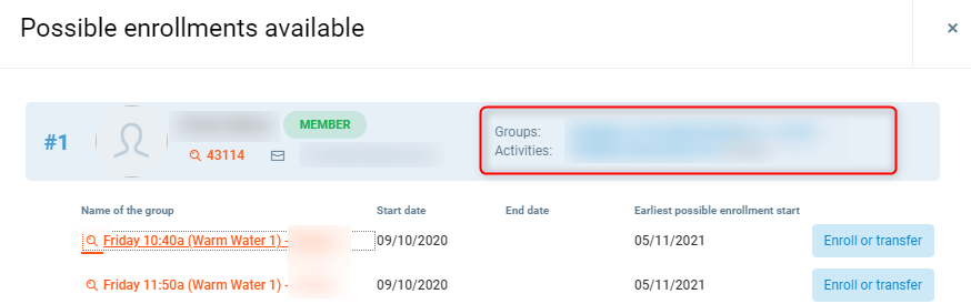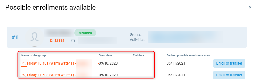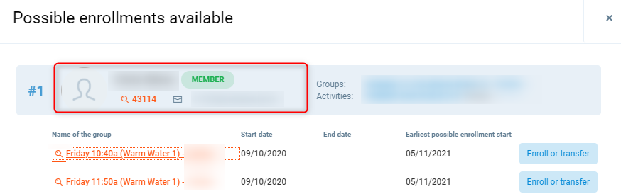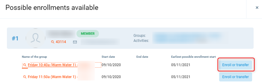 Enrol or transfer - This will enrol the member into that group. More information about this process can be found here.