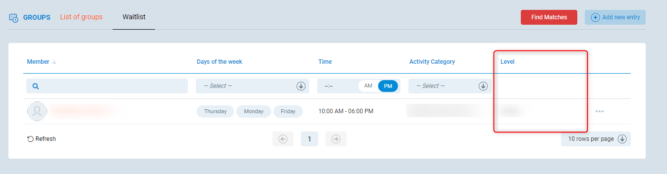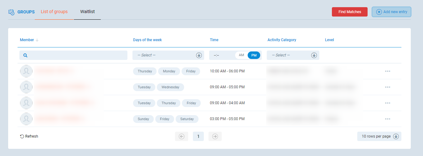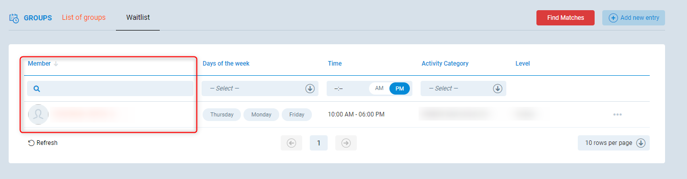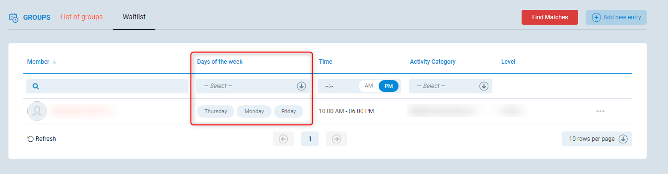 Time - Filter the wait list to only show members who have requested a selected time. This will include members who have requested a range in time, or a matching time if exact time is used.