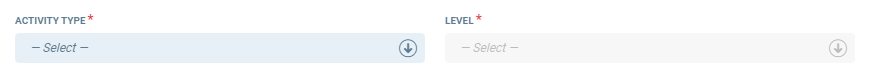 Activity type / Level - Select the activity category and level for the matches to appear.