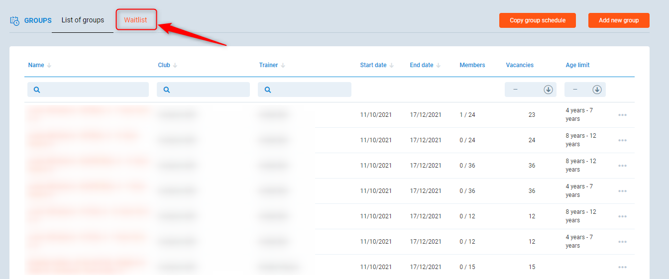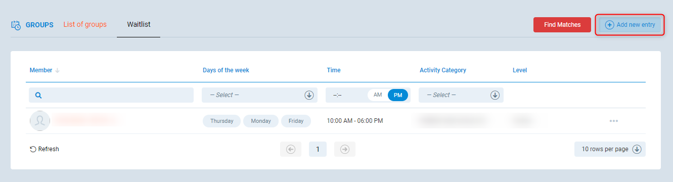 To add a new member to the waitlist, press Add new entry on the top right hand corner of the screen.
