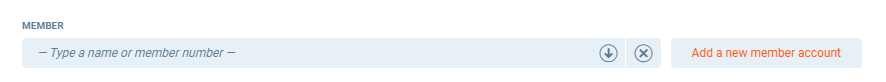 Member - Search for an existing member or add a new member account. When pressing Add a new member account this will bring up a new screen to create a child/parent or user account. More information about this process can be found here.