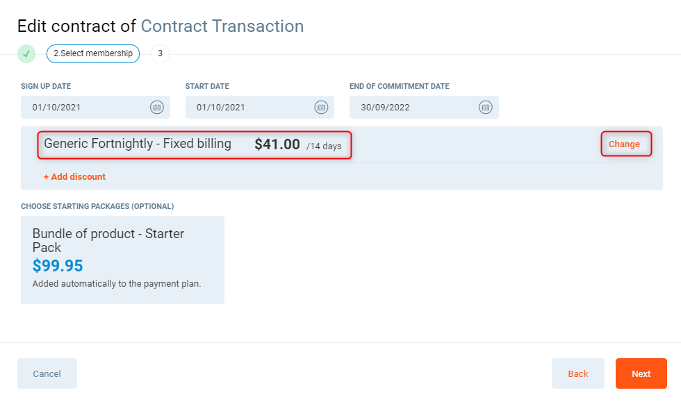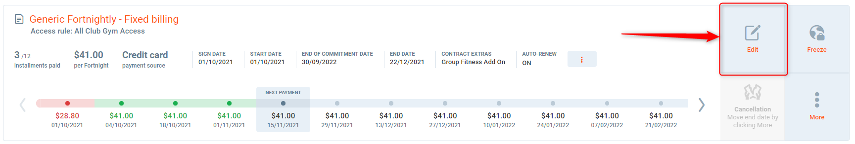You can choose to edit the contract, this will allow you to change the consultant, add a contract discount or change payment source of the contract.