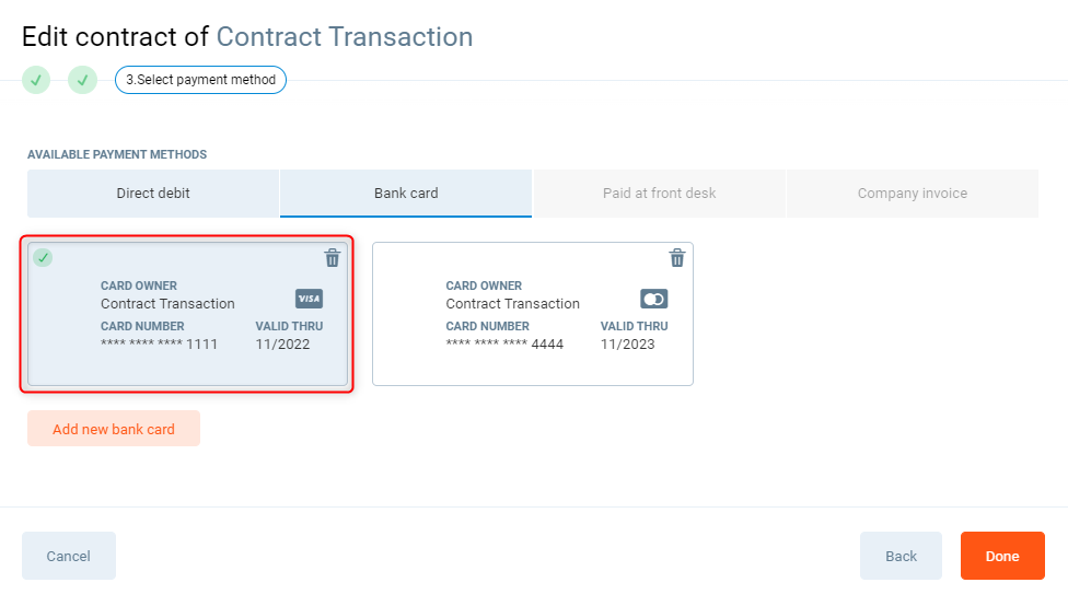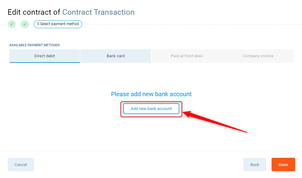 You can add a new payment source by pressing Add new bank account / Add new bank card