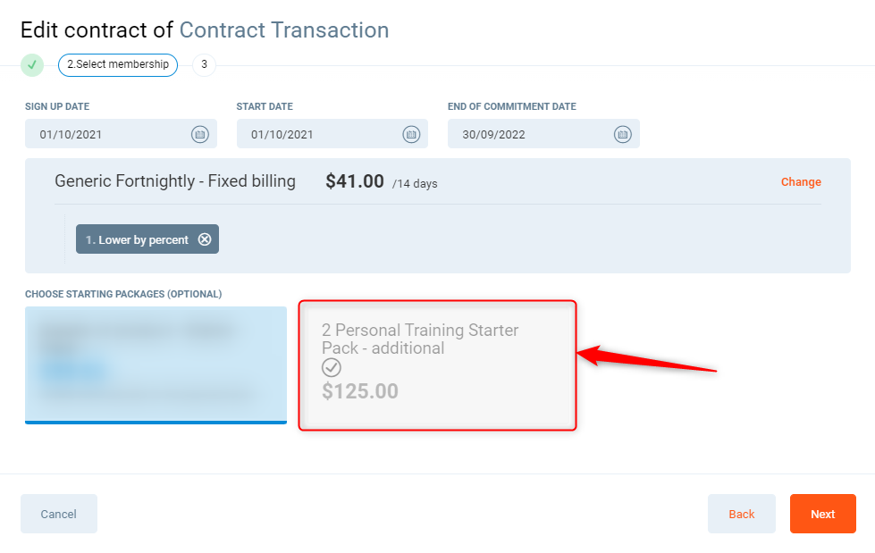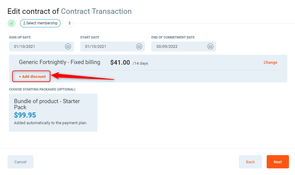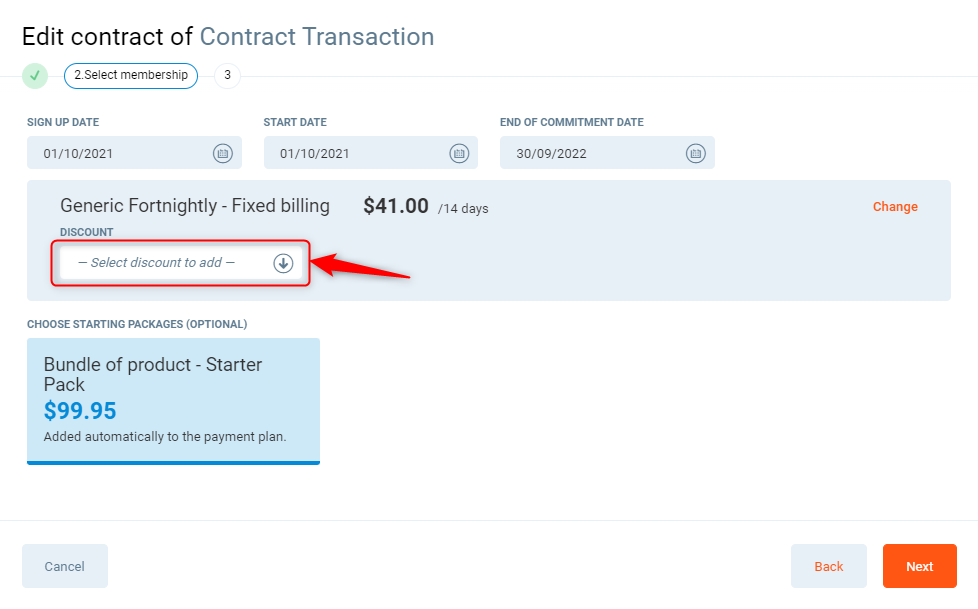 Choose starter package - Select if you wish to add a starter pack to the club member.
