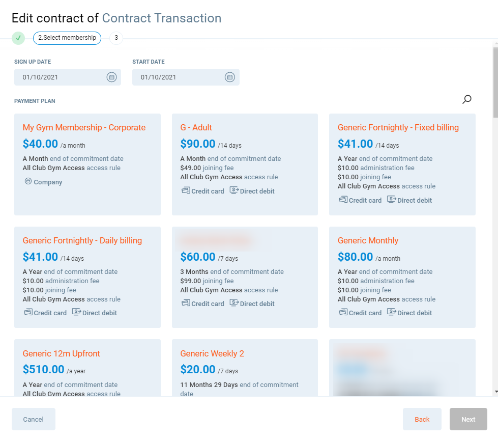 Available payment plans - Any options in blue can have a payment source connected to this payment plan. Any options greyed out cannot have this payment source connected.