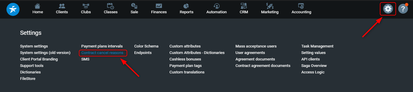 To access contract cancel reasons, go to PGM->Settings->Contract cancel reasons.