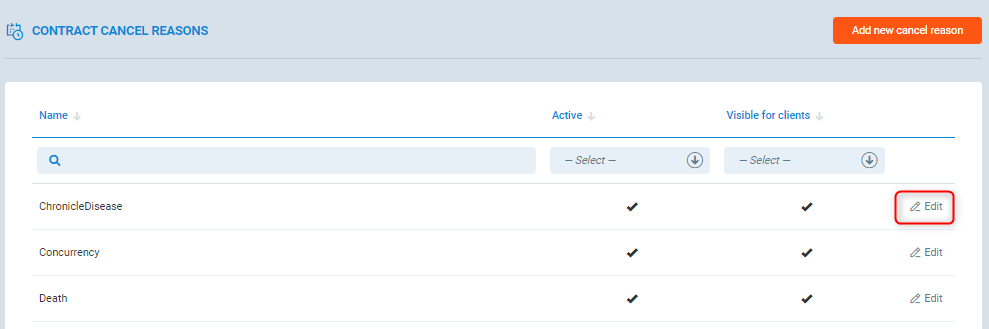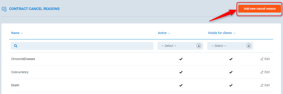 Visible for clients - a view of which contract cancel reason is visible for clients