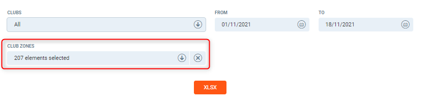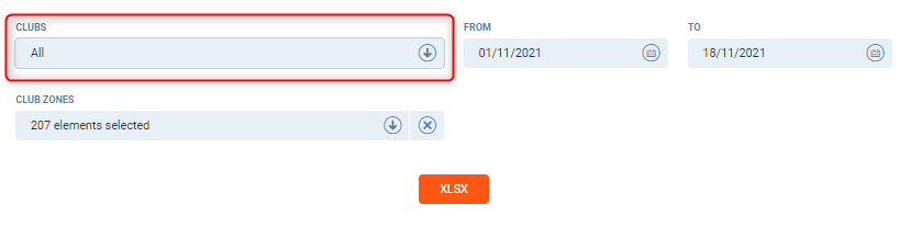 Club zones - Select the club zone, if left as the default view this will use all club zones within the club selected.