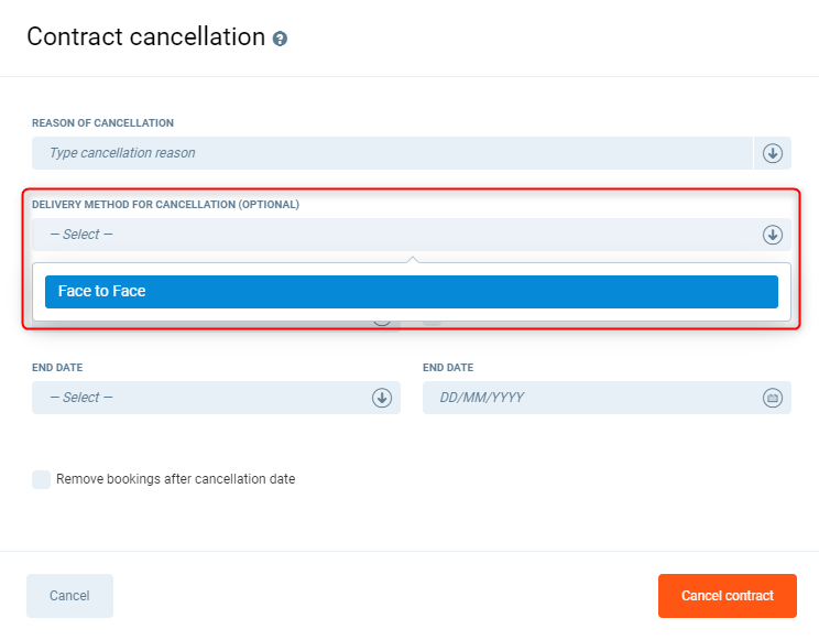 This article will guide you on how to create new options for delivery method when cancelling a contract on the Member profile.